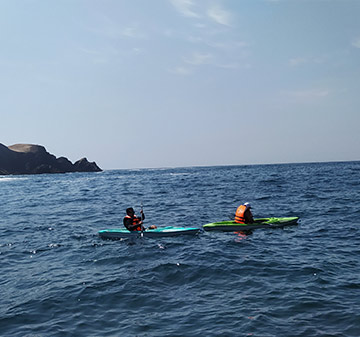 un Kayak y remar hasta los mas profundo de la Caleta, luego pasaremos al Bar-Vivala para disfrutar